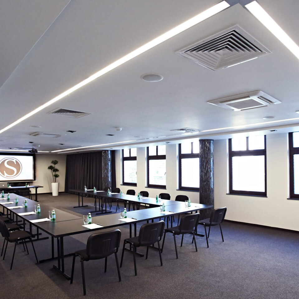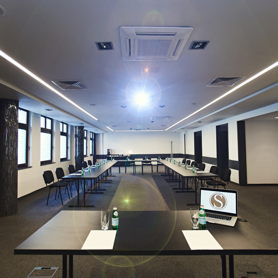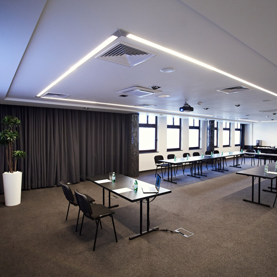 Sala konferencyjna zlokalizowana jest na pierwszym piętrze, w cichej i spokojnej części hotelu, by stworzyć naszym Gościom atmosferę sprzyjającą pracy i szkoleniom. To miejsce profesjonalnie przygotowane do pełnienia swojej funkcji, znajdują się tam wszelkie niezbędne sprzęty, które pozwolą na zorganizowanie nowoczesnego, biznesowego spotkania, czy szkolenia dla pracowników różnych szczebli.