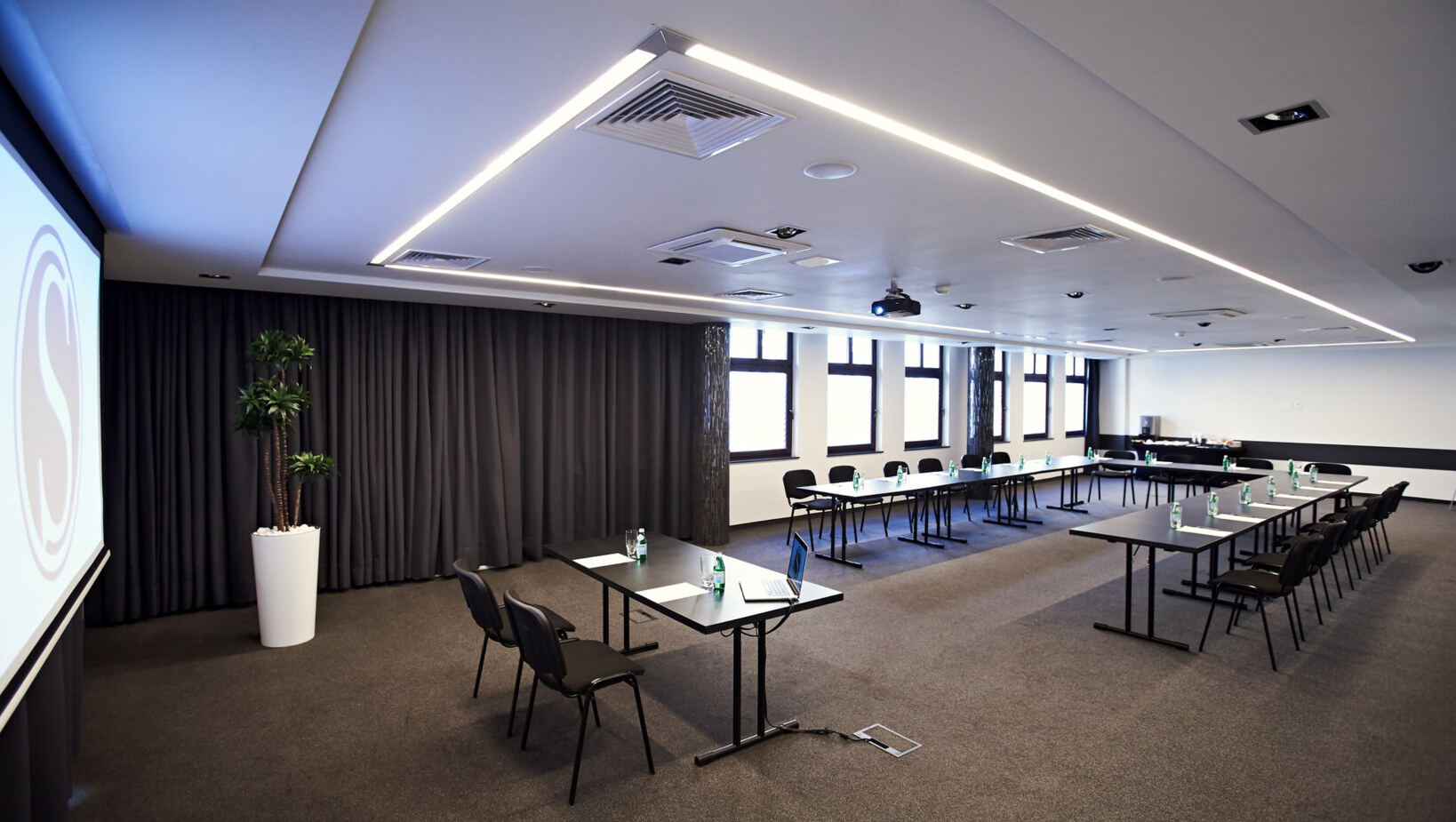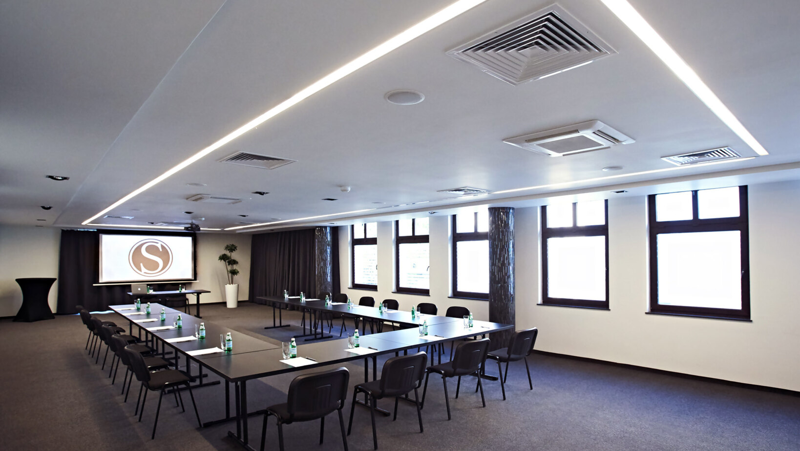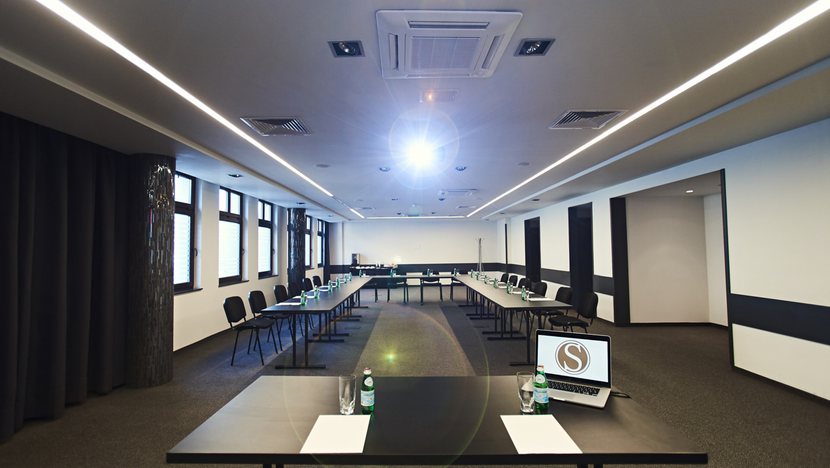 Sala konferencyjna zlokalizowana jest na pierwszym piętrze, w cichej i spokojnej części hotelu, by stworzyć naszym Gościom atmosferę sprzyjającą pracy i szkoleniom. To miejsce profesjonalnie przygotowane do pełnienia swojej funkcji, znajdują się tam wszelkie niezbędne sprzęty, które pozwolą na zorganizowanie nowoczesnego, biznesowego spotkania, czy szkolenia dla pracowników różnych szczebli.
