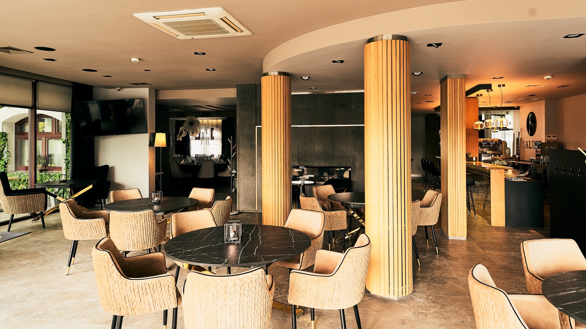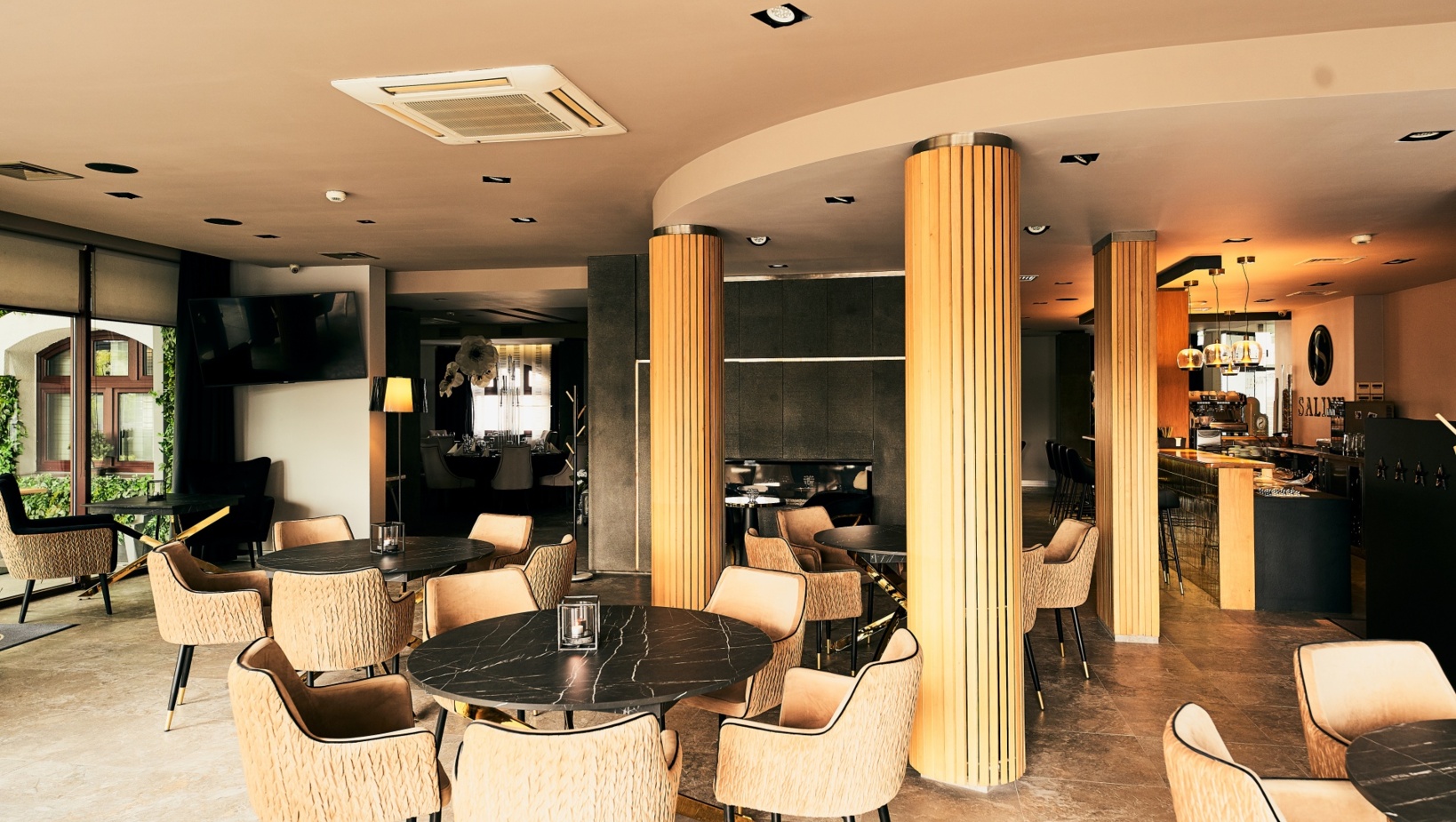 Restauracja Saline to doskonałe miejsce na spotkanie z bliskimi, biznesowy lunch, a także odpoczynek przy łyku prawdziwego espresso. W Sali restauracyjnej znajduje się kominek, który tworzy niepowtarzalny klimat i czyni wnętrze przytulnym, przy jednoczesnym zachowaniu jego nowoczesnego charakteru. Restauracja zachwyci Państwa eleganckim i klimatycznym wystrojem.